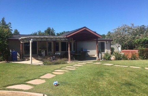 Backyard amenities include built in swimming pool with slide and solar heating, hot tub, cabana, two outdoor fire pit/fireplace, zip line, lighted bocce court, trampoline and vegetable garden. Our home is casual, but you will feel comfortable and cozy. The layout of the home and yard make for an enjoyable visit with family or friends.