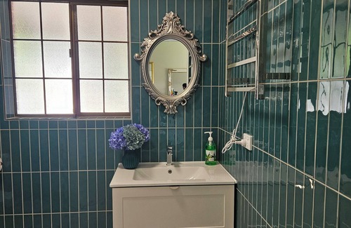The large main bedroom has a queen-sized bed (plus en suite) and is filled with antique furniture with its own private sitting area. There is an LCD TV on the wall, reverse-cycle air con, and a ceiling fan.