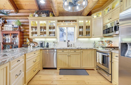 No matter the season, 'Le Tresor Cache' ensures easy access to endless outdoor activities! Walk across the vacation rental's private bridge to jog or bike the 15-mile Provo River Trail, then go to the beach or Sundance Mountain — both just 8 miles away! Later, you can return to this 2-bed + loft, 2-bath cabin for on-site fly fishing or a round of games, then cozy up on the porch to listen to the majestic river sounds.