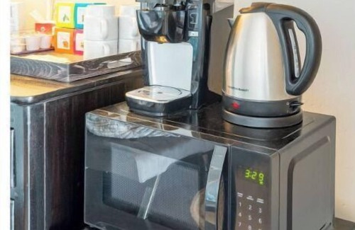 Small refrigerator, microwave & coffee maker with mugs & wine glasses provided. If there are any special needs or requests, please feel free to message beforehand so it can be accommodated, if possible!