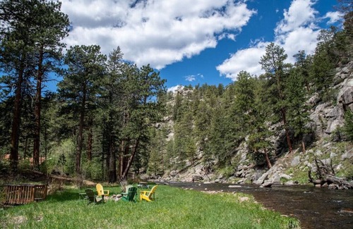 We’re nestled along a quarter-mile private stretch of the (highly fishable!) Big Thompson River, with plenty of space to spread out and relax on our forested, five-acre grounds. The vibe here is cozy, laid-back, and old-school, with a mix of historic rental quarters and newer, more modern dwellings to choose from. We’re five minutes from downtown Estes Park and ten minutes from Rocky Mountain National Park.