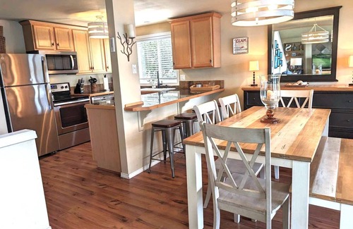 Shore Lane Beach House is located on the east side of Oakland Bay (which is just south of Hood Canal). Look across the water and see the city of Shelton - the lights are beautiful at night. Saunter down a few stairs to the beach which is great fun to beach comb any time of year. You'll see playful seals frolicking and salmon jumping in the water. At high tide, you can catch fish off the lower deck or simply cast from shore and reel them in! The water is surprisingly warm in summer. You can swim, or just sit with feet in the water, face in the sun for a truly Northwest Puget Sound experience. In winter it is just beautiful. You can even kayak on the calm waters of Oakland Bay.