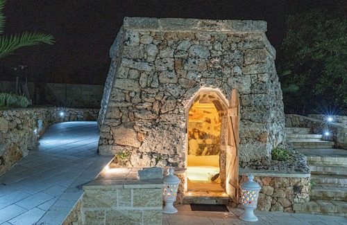 immersed in the countryside, but has few steps from the town center, the gem and an ancient structure of 1910. today it is completely restored respecting the ancient lines and equipped with the most modern comforts, such as swimming pool, solarium, a splendid spa created in trullo, internet Wi-Fi, playground for children. guarantees exclusive holidays for a stay in an authentic atmosphere without renouncing luxury, the possibility of the cooking school and the chef at your disposal to let you taste the unique dishes of Salento. thanks to its heating system, the Chicca is a very large fireplace that can accommodate you even in autumn and winter