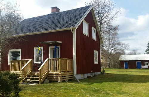 The holiday home Klavreström is located in such an idyllic place Klavreström. Klavreström lies between two large lakes, which come close to each other within a few hundred meters. This holiday home is located between the two lakes, which can be reached in less than 250 meters. A private boat is ready for you on the shore of the lake. The state capital of Smaland Vaxjö is only 40 km away.