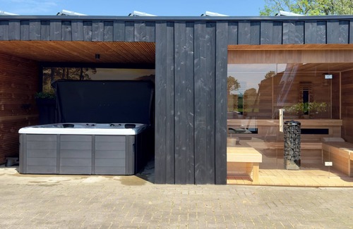 Recreational amenities at the farm stay include a hot tub and a sauna.
