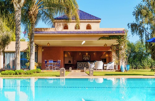 Located in Marrakech, this 8-bedroom, 8.5-bathroom villa lets you experience it all. Fans of nature and the outdoors will love being 17 minutes by car from Place des Ferblantiers and 31 minutes from Ourika Valley. If you'd like to explore the area, you can make the 19-minute drive to Jemaa el-Fnaa or the 20-minute drive to Avenue Mohamed VI.