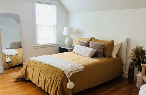 Experience the charm of this calm, stylish, not the least bit ordinary space. This Cape-style home located on a quaint side street offers a unique and cozy retreat. Located in one of Holyoke’s most desirable neighborhoods, the home provides easy access to the city life and attractions, while also being a short drive from the prestigious Five College Consortium, and the scenic Berkshires. Enjoy a blend of historic charm and modern convenience as you explore all that this dynamic region has to offer. This amazing property features 3 quaint bedrooms with full beds, perfect for a wonderful night's sleep. With amenities like AC, heating, WiFi, and a washing and drying machine, guests can relax and unwind during their stay. The bathroom comes equipped with a hair dryer for added convenience. Book now and enjoy everything this cozy house has to offer.