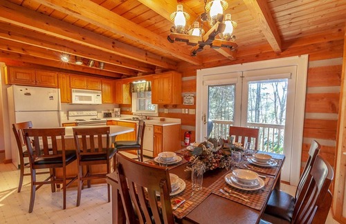 Sugar Shack is a quaint 2BR/2BA log cabin with a fantastic location between Boone, Blowing Rock, and Banner Elk. Close to Sugar Mountain Ski Resort, Appalachian Ski Mountain, and Beech Mountain Ski Resort. Views of Grandfather Mountain on the drive to the home. On the main level, enjoy the open floor plan between the living room, dining room, and kitchen with a gas fireplace in the main living area. In the warmer months, find yourself on the covered porch with the cool breeze and gas grill for entertaining. Upstairs, you can find an entertaining area with a foosball table and gaming console in the loft, a bedroom with a bath, and a pull-out couch upstairs as well.
