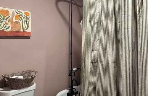 Newly renovated, this 1-bedroom getaway combines historic charm with modern comfort. The cottage features a welcoming living room with a queen pull-out sofa bed, a full kitchenette for easy meals, and a full bathroom — along with heating, AC, and WiFi — ensuring guests have everything they need for a relaxing stay.