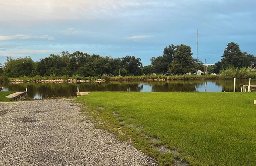 Small, one of kind "studio" fishing camp, located directly on the bayou with incredible sunsets and access to a boat launch on property. Sleeps 2 people and comes with a full kitchen, bathroom, refrigerator, washer dryer, coffee maker, boat launch, fish cleaning station plus covered parking for your car and/or boat.