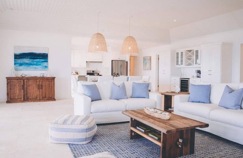 Absolute BEACHFRONT villa, Queens Cottage in Silver Sands is a newly renovated villa with fresh and chic coastal interiors decor.