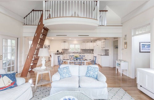 Warm up by the cozy gas fireplace in the evenings or stay connected with wireless Internet and cable TV. Our home is thoughtfully designed to cater to families, especially those with young children. Discover the joy of Quidnet's safe and inviting beach, just a stone's throw away.