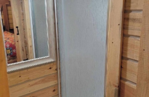 Our 400 square foot cabin has vaulted ceilings and all wood interior!