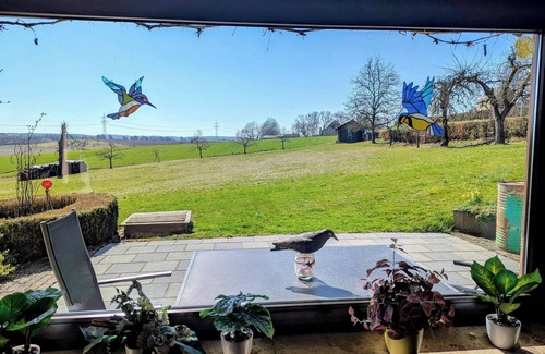 Very quiet, cozy apartment in Rödental, the "City of Ceramics and Dolls". The apartment is located in the basement right next to the "Jakobsweg" and the "Historische Panoramaweg". Over 84 square meters of living space offer you an unforgettable vacation. In the first bedroom you will find a higher double bed and in the second bedroom two single beds. The beds are equipped with intervertebral disc mattresses and adjustable slatted frames. The kitchen and dining area are fully equipped with a refrigerator, microwave, coffee maker, toaster, oven, kettle, electric cooker, dishwasher and complete dishes. In the living area there is a sofa, a flat screen TV, DVD player, radio and CD player. The bathroom has underfloor heating, a shower, toilet and sink. From the south terrace, equipped with garden furniture, deckchairs and a barbecue, you can admire the beautiful sunrises. Bed linen, towels, free WiFi and parking are included in the price.