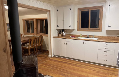 Our newly renovated1935 cabin in the woods is waiting for you and partner to slip away. The cabin has a living room, dining area, stocked kitchen, bedroom with brand new bed and full bathroom; offering everything you need to hide away and relax. The cabin is located behind Sierra Sky Lodge, Family Style Bed and Breakfast, giving you access to their seasonal heated swimming pool, firepit, horseshoes and badminton court. A home cooked breakfast can be added on for an addititonal fee of $25per day/ per couple.