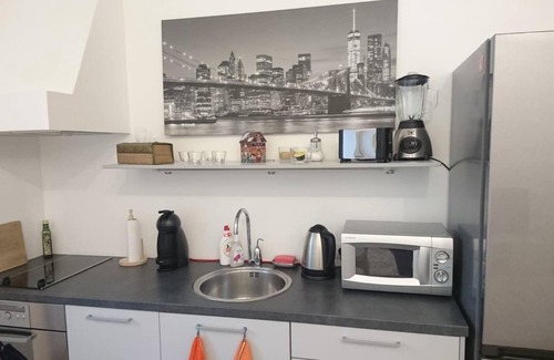 The kitchen has fridge, stove, oven, toaster, kettle, dishwasher, capsule coffee machine, plates, glasses, cups etc. There is one bedroom with queen bed, it also has the niche with floor mattress for two people and a very comfortable couch for one person. Bedding sheets, toiletries and towels are provided. There is a travel baby cot available upon request.