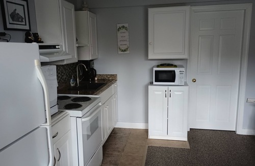 Spacious 1 Bedroom unit with queen bed, and living room/kitchen area with pull out Queen couch (Linen for the pullout couch provided upon request). Perfect for a 2 Adults or Adult and child. Private home on a quiet road with Mountain view. Separate entrance, on ground floor. There is a set of stairs to navigate to reach the entrance. Full kitchen setup, with electric stove, microwave, dishwasher, toaster, coffee maker, and full fridge. All linen provided. Streaming TV (Roku) with major networks and with Netfix . WiFii, nicely landscaped Front yard accessible for relaxation. Not handicap accessible. A few steps from road, minutes from Storyland and local attractions. Ideal location for area activities: shopping, skiing, hiking, golfing, rafting, etc. Gas grill provided on request. All cleaning and sanitizing guidelines followed, and much more. Contact free entry. THIS IS A SMOKE FREE PROPERTY.