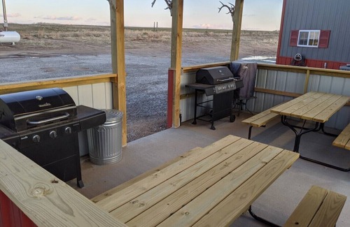 Welcome to the Rut 'N Strut Lodge South! Located only 6 miles from town and next door to The Rut 'N Strut Lodge North, this quiet rustic countryside getaway is perfect for both long and short term stays. Unwind over flames in the firepit while enjoying a Kansas sunset or enjoy your favorite book or movie while relaxing in our oversized recliners or reclining couches. The facility is fully furnished and will provide for all your lodging needs whether staying for a single night or an entire month. Hunters will enjoy the 8 outdoor covered dog kennels and game cleaning shed. We are located near 10,000 acres of public hunting ground.