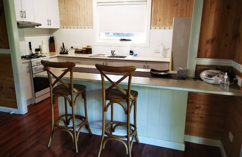 The accommodation is a large self-contained cabin with all the mod cons to make your stay comfortable. It is located 2.0 kms from the CBD and is set in the grounds of a country home surrounded by green lucerne fields and huge shade trees. The garden is a sanctuary for wildlife. The road is a dead end so there are only a few cars belonging to the residents.