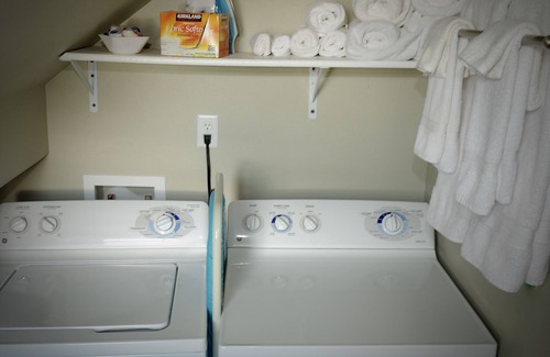 2 story cottage, full kitchen including minor and major appliances, full living room includes flat screened TV, full bathroom includes a washer and dryer. Sleeps 6 people, private queen bedroom on main level, open loft area upstairs (semi-private) that has 2 twin beds and 1 king bed, flat screened TV. Also, cottages are children & pet friendly