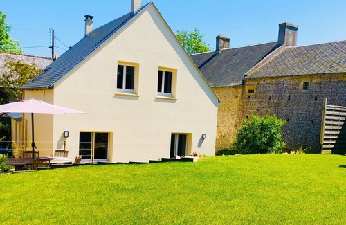 Located 300 meters walk from the beach, fully restored character house. 135 m2 in a reassuring and relaxing setting. Upstairs 3 large bedrooms, 1 bathroom with WC, On the ground floor, a large space in a decor mixing a current atmosphere and Caen stone, fully equipped kitchen "dishwasher, oven, microwave, large fridge with freezer space ”, a separate toilet Large relaxation room with sofa, television, game console in a cocooning atmosphere. Nursery kit (cot, baby chair) Outside, 300 m2 of land not overlooked, terrace with outdoor table and chairs, weber barbecue. Ideally located 400m from the landing beaches with the pontoons of the artificial port. 2.5 km on foot from Arromanches, 15 km from Bayeux known for being the 1st liberated city in France and the speech of General de Gaulle but also his Bayeux tapestry "registered in the UNESCO world memory register", at 25 km from the Caen World War II memorial. Asnelles sur mer small seaside resort of 600 inhabitants with these typical middle-class houses of the end of the XIX th centuries which line the large sandy beach. Known also for its famous shortbread biscuits, made by craftsmen. A bakery, a butcher and a supermarket are 300 m walk in the small town of Asnelles. Facebook: gîte damat Cardin A deposit of 400 euros will be required upon delivery of the keys. Bed linen and towels optional.