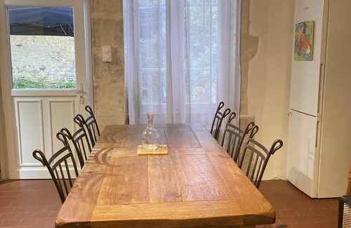 Old restored village farm. Comfort equipment. A house with large interior volumes. A main living room of 60m² (kitchen dining room living room). 2 WCs (1 on the ground floor and 1 upstairs), 3 bedrooms upstairs, in addition the sofa is convertible.