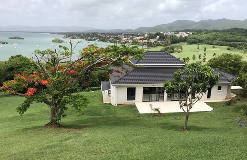 This quiet luxury villa is located on the golf course and enjoys a very beautiful view of the sea, the golf course and the Trois Ilets.