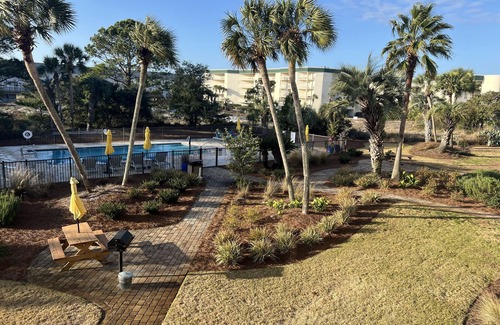 In the heart of Santa Rosa Beach, Florida. This newly renovated studio is less than 3 minutes to the beach and is the best studio condominium in the building. The condo has wonderful pool and garden views and has been completely updated in 2024. We give you 2 adult bikes and one child bike to use during your stay. This alone will save you close to $500/week. We are close to all the amenities that make Santa Rosa the perfect spot. Walk or bike to coffee shops or restaurants. We are walking distance to the Old Florida Fish house, Seaside and WaterSound. This Is a wonderfully quiet area of Santa Rosa. A great heated outdoor pool awaits your arrival after a hot day on the beach which is a short walk away. This will be your go to destination for years. We have a full kitchen for your use and the entire property was fully renovated in January 2024.