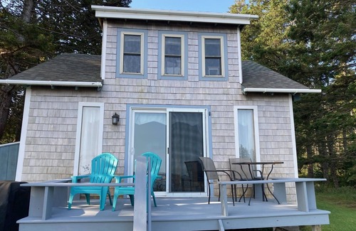 This well kept, bright and renovated little cottage is nestled 30 feet from a private cove & beach on the Atlantic ocean. It is quiet and perfect for relaxing, strolling the beach and rocks, launching your kayaks and enjoying a firepit on the oceans edge.. A 10 minute walk to the other side of the island brings you to McLoons Lobster Shack, a Maine foodie destination.