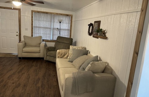 Need a get away? Stay in a peaceful and quiet house with open pasture land for viewing! Fully stocked kitchen, two queen beds with blackout curtains for a great night’s sleep and room for air mattresses if needed.