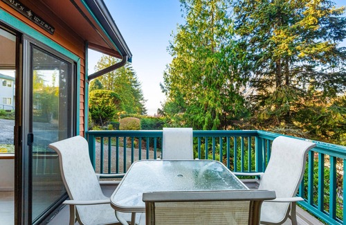 Nestled under towering trees, this Puget Sound view home is very private and quiet, with the only sounds being that of nighttime hooting owls and the rushing creek next door. It offers a memorable wilderness retreat for you and your loved ones amongst the treetops. Enjoy the pleasant Washington weather from its ample outdoor living space, which includes a balcony, patio, deck, and lower seating area next to the creek for this Puget Sound view home.