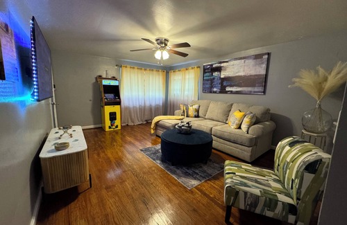 Get ready to relax in this 2-bedroom apartment in Cincinnati. This adorable property features a cozy living room with an awesome full bed for extra guests. The bedrooms offer a king and a full bed, perfect for a good night's sleep. Enjoy the convenience of WiFi, heating, and a washing machine during your stay. With a bathtub and hair dryer in the bathroom, you'll feel right at home. It's easy to see why you'll be able to unwind at our place.