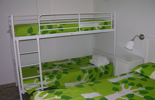 Semi-detached villa with fine finishes, consisting of living room with open kitchen, 2 bathrooms, 1 master bedroom, 1 bedroom with 4 beds (1 double bed + 1 bunk bed), 1 study room with 2 beds, garden equipped with table, barbecue, shower and sink. It is a semi-detached house and is spread over three levels: basement, raised ground floor and first floor.
