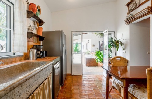 "Quintal das Oliveiras", 5-room house 145 m2 on 2 levels. Beautiful and tasteful furnishings: living/dining room, on 2 levels with dining table, cable TV, hi-fi system, DVD and electric heater. Exit to the terrace. 1 room with 1 french bed (160 cm, length 200 cm), electric heater. Kitchen (oven, dishwasher, 4 ceramic glass hob hotplates, toaster, microwave, freezer, electric coffee machine, cooking island). Exit to the garden. Shower/WC. Wood heating, forced-air heating. Heating not available in all rooms. On the lower ground floor: 1 room with 2 beds (90 cm, length 190 cm). Kitchen (oven, 4 gas rings, kettle, freezer) with dining table. Exit to the garden. Upper floor: gallery. 1 room with 1 french bed (180 cm, length 200 cm), bath/WC. Exit to the balcony. Shower/WC. Balcony, 2 terraces covered. Terrace furniture, barbecue, deck chairs (6). Facilities: washing machine, children's high chair, baby cot, hair dryer. Internet (WiFi, free). Please note: non-smokers only. Fire extinguisher. No internal connecting door between the separated properties. When there are less than the maximum number of guests staying at the property, the annex will not be available for use. 17833/AL