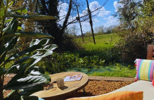 Outside is a pretty courtyard next to a pond with lovely views of the Norfolk countryside. This sheltered area has a firepit/barbecue and a table and chairs. Please note if booking with children, the pond has not been fenced off. There is a Hobbit House in the garden which is a barbecue hut. It has seating and a large barbecue with chimney inside, making it perfect for cooking, eating and snuggling by in the cooler months.