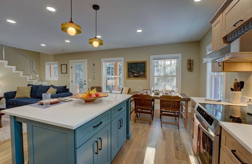 This serene and modern retreat offers all the comforts of home, including a fully-equipped kitchen, cozy living area, and a private backyard with a fire pit. Unwind on the farmer's porch and take in the peaceful surroundings or head out to explore the nearby hiking trails and scenic beaches. The Bayside Bungalow is the perfect escape for a romantic getaway or a family vacation. Book your stay now and experience the beauty and tranquility of Maine's stunning coast.