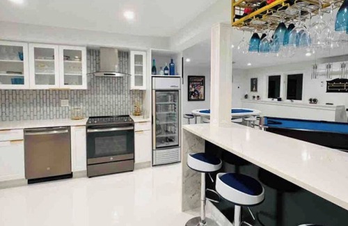 This upscale fully loaded modern oasis has everything you need to enjoy a fabulous vacation with your loved ones. OUTDOOR SPA ROOM WITH HOT TUB.. SMART TV.. FAST WIFI, Two gourmet kitchen, a full gym, a beautiful (AMC) like home theater with VIP seating for you to watch a nice movie while enjoying drinks and popcorn with family and friends. The game room is super fun with a nice poker table, pool table, arcade and many other friendly games. The game room kitchen is fully loaded as well so you can show off your chef skills and create amazing recipes for all to enjoy. You will also find in the game room a full glass door beverage and wine fridge so you can store all your favorites to enjoy during your stay.
