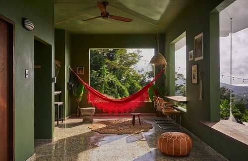 Overlooking a sparkling swimming pool and an endless sea of rainforest, the WALD HAUS full home rental sits at the feet of El Yunque—a 28,000-acre wildland that is the only tropical rainforest protected by the US Forest System. There’s Roku, a TV, and even WiFi but you likely won’t need it thanks to the property’s luxe outdoor pool, mountain-view terrace, fire pit, hammocks, one-acre private garden, airy living room, coral-grouted rain shower, open kitchen, bbq, and serene reading nook. Not to mention the waterfall hikes, rope swings, birding, and horseback riding right outside the door in El Yunque. Two king-size bedrooms, two queen-size bedrooms and three full baths make room for the whole family.