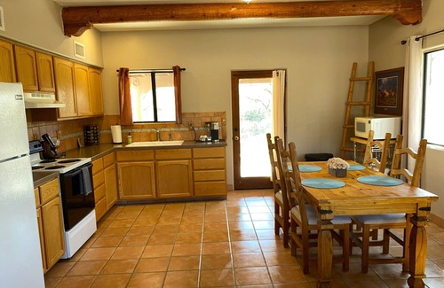 Our beautiful 1 bedroom/1 bath guest casita is nestled on a 3 acre ranch at the base of Mt. Lemmon in Tucson, Arizona. The casita’s open floor plan and high ceilings offers visitors a roomy and comfortable getaway just outside of Tucson city limits, but within minutes of everything!