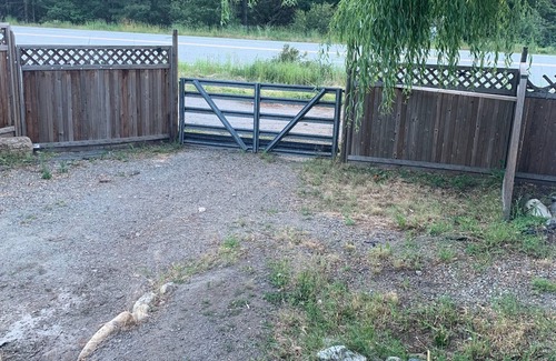 One bedroom ranch house with kitchen and shower. Additional bed in living area. Private gated yard right off highway. Laundry available. On horse farm that has goats and ducks and chickens. Miles of private trails for hiking.
