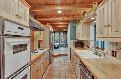 Including four bedrooms, three full bathrooms, one with a jetted deep tub and one with a large, double shower stall, two living spaces, a galley kitchen with high quality appliances combined with all gadgets and utensils you may need to cook and serve gourmet meals right in the big dining space which can accommodate up to 12 people. Very private outdoor hot tub for 8 people. Large deck, shaded patio, an expansive enchanted fenced-in yard with many pathways and sitting areas. Amazing mountain views are complimentary ;-) We are sure that every one in your group will find their favorite spot.