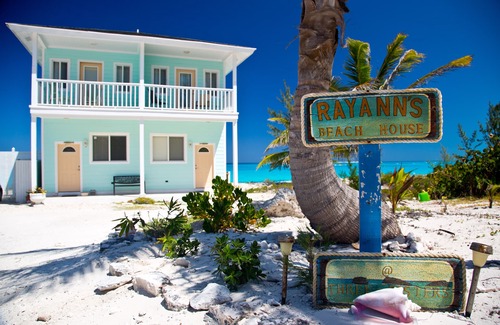 Rayann's Beach House @ Three Sisters' Rocks, located 5 minutes drive from the airport, and 15 minutes from George Town, the main town of Great Exuma Island, is a 2-story town house that has two x 2 bedrooms, 2 and a half bathrooms apartments. For each unit, the upper level houses 2 bedrooms and 2 bathrooms. Each bedroom has a private balcony. The master bedroom has a panoramic view of the sea. Downstairs is the kitchen area, a half bathroom, and an open area with a dining and a lounge area. A double French door leads to a private verandah with a breathtaking view of the ocean. There are ceiling fans in every room and central airconditioning for when the island breezes are not cool enough.