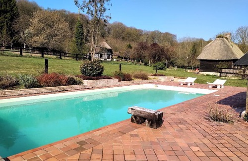 Real Norman cottage with access to a heated swimming pool is located in Beuzeville. Real Norman cottage with access to a heated swimming pool provides accommodation, featuring Internet, Kitchen, Sports/Activities, among other amenities. This House features Internet, Kitchen, Sports/Activities, to make your stay a comfortable one.