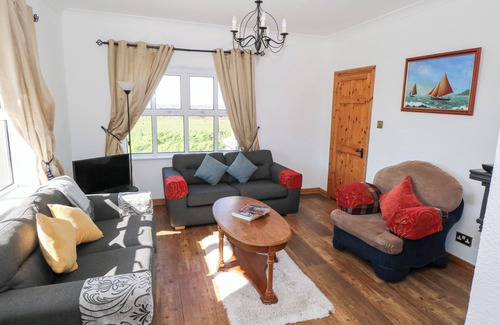 Amenities: Oil central heating with open fire. Electric oven and hob, microwave, fridge/freezer, washing machine, tumble dryer, dishwasher, TV with Free-to-air channels, DVD, selection of books and games. Fuel and power inc. in rent AprOct inclusive, charged by meter reading NovMar inclusive. Starter pack for fire inc. in rent. Bed linen and towels inc. in rent. Cot, travel cot and highchair. Ample off road parking. Front and rear lawned gardens with furniture. Sorry, no pets and no smoking. Shop, pub and beach 5 mins walk. Note: This property does not have WiFi
