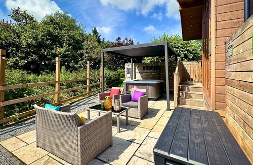 Recently upgraded to include Tilt and turn Gazebo over hot tub. This luxury and contemporary one bedroom lodge, south facing and overlooking woodland is perfect for couples wanting a romantic break away. The master bedroom with Juliet balcony includes a Smart TV and en suite shower room. The open-plan living/kitchen/dining room has comfy sofas and a 55-inch Smart TV perfect for cosy movie nights. The modern kitchen has all mod cons including a microwave, coffee machine, air fryer and dishwasher. The versatile dining table converts to a pool/table tennis table giving you the choice of a romantic meal or hours of fun competing against each other. The private outside space has steps leading down to a patio area where you can enjoy warm days and evenings under the stars all snuggled up in the unique Cabana day bed. The outdoor hot tub is weather proofed with a tilt and turn gazebo which can be set to shelter/shade or open for sunny afternoon and clear nights. Comfy rattan furniture and festoon lighting complete this fabulous outdoor space.