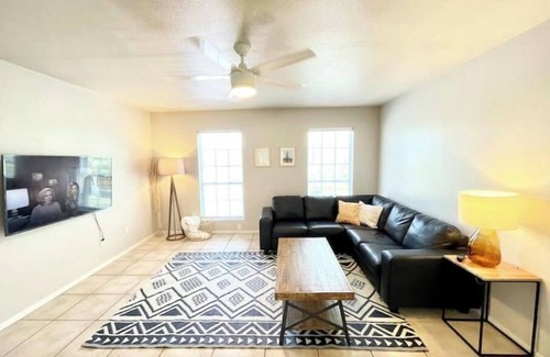This 2BR stylish pet-friendly apartment is just 5 miles from downtown Austin and the airport. It has everything: clean comfortable beds, 2 work desk, stocked kitchen, covered patio, 55” TV, and lounge chairs. My place is good for couples, solo adventurers, business travelers, and families (with kids).