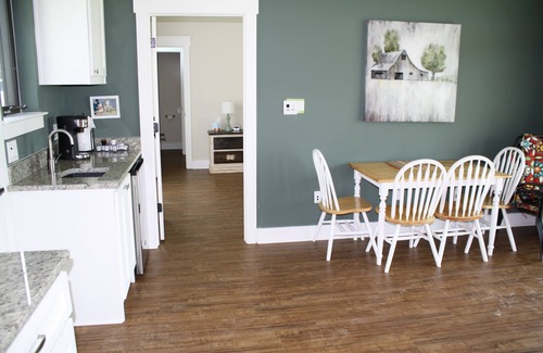 The Casita has two bedrooms (1 king, 2 doubles), each with their own private bath, and a center gathering room with futon, table, sink, small refrigerator, and K-cup coffee maker. Outside is a fire ring to enjoy the evening stars and mooing of neighboring cows. Great place for s'mores (roasting sticks provided)!