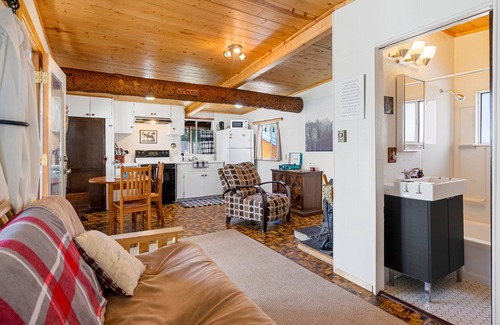Immerse yourself in the heart of Red Feather Lakes Village. This fully equipped cabin is the best of both worlds as it boasts nostalgic features such as a huge VHS, DVD and vinyl collection as well as the modern creature comforts of wood burning fireplace, baseboard heat, redone bathroom, microwave, and coffee.