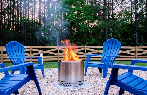 This tranquil retreat is thoughtfully furnished to maximize space and create a cozy, home-like atmosphere. The fully stocked kitchen, featuring brand-new appliances, seamlessly flows into a spacious dining area—perfect for gathering and sharing meals. Step onto the covered back porch, which overlooks a large, fenced backyard where your four-legged companions can roam freely. Enjoy outdoor cooking with the propane grill and accessories, or unwind around the backyard fire pit—we provide all the wood and gas for your convenience.
