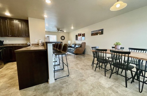 After a day on the trails, a well-furnished kitchen & grill make this feel like your home in Moab. Everyone can relax & stream their favorite shows & movies on three smart TVs. Gig internet has enough bandwidth to spare for video calls & the remote worker of the crew. There is a full-size washer & dryer in the home.